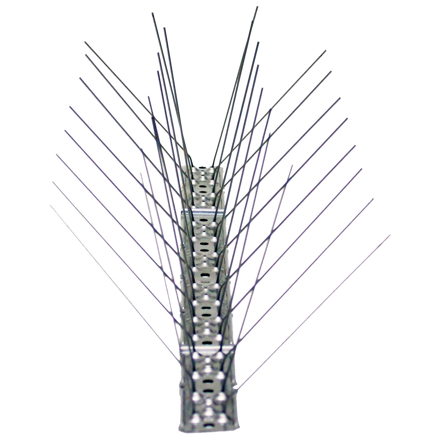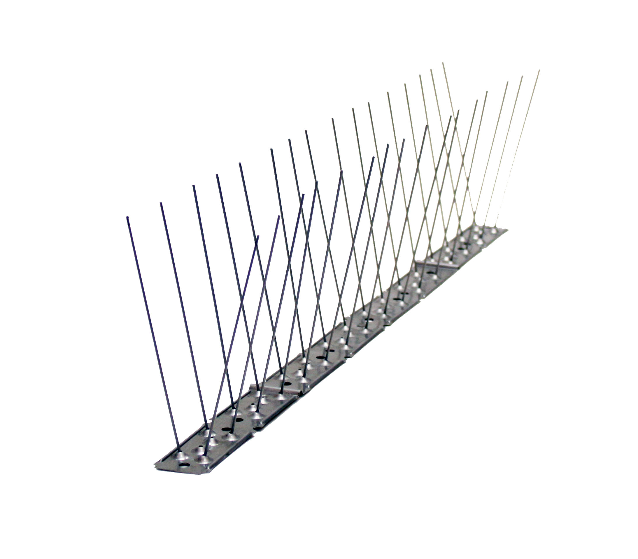 Por outro lado, também é muito importante o número de espetos por metro de comprimento. Se utilizarmos um modelo com poucos espetos, corremos o risco de que os pombos se introduzam entre eles, chegando a construir aí os ninhos. Quanto a isso, não precisa de se preocupar, porque os nossos espigões anti-pombos possuem o número máximo de espetos por metro de comprimento para assegurar uma proteção eficaz.
